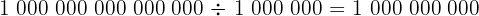 Att dividera stora tal kan kännas svårt, men principen är densamma som vid mindre tal. Om vi vill dividera stora tal, exempelvis en biljard med en miljon, kan vi skriva: