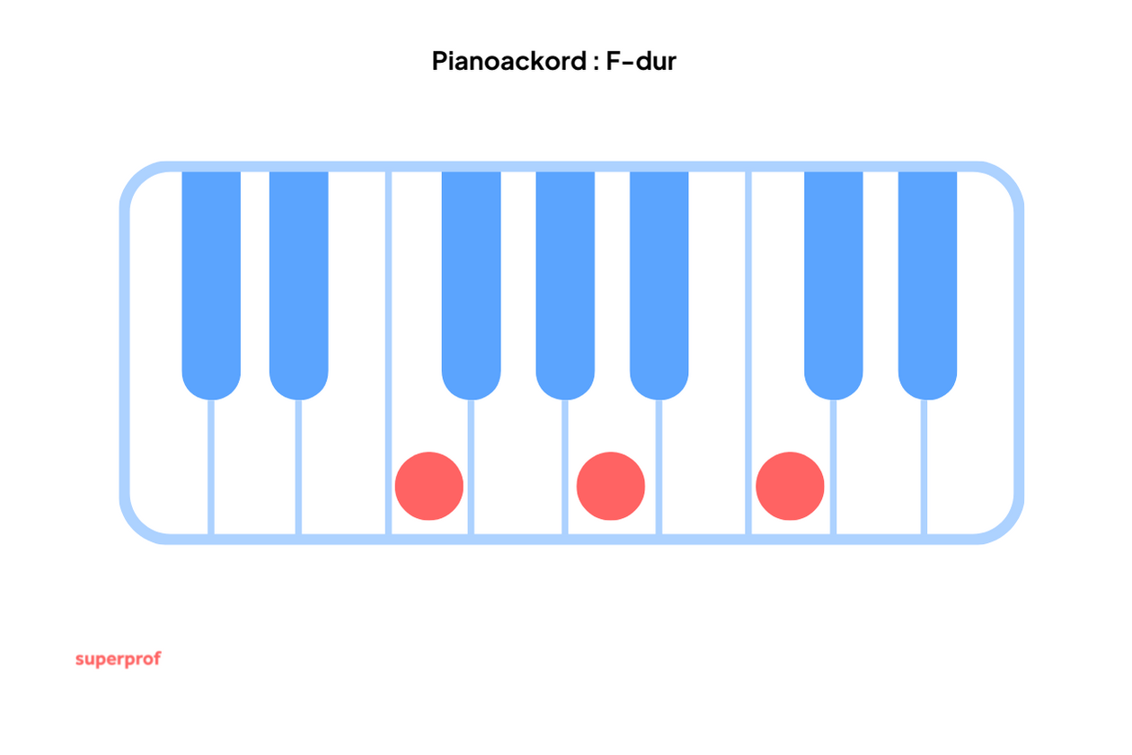För pianoackordet F, håll nere f, la, c