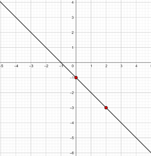 Funktionen har lutningen −3 och skär y-axeln vid −1.