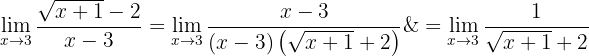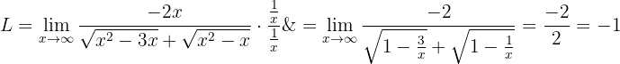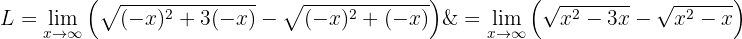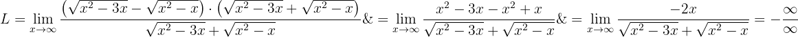 För att ta bort subtraktionen med oändlighet rationaliserar vi uttrycket (d.v.s. multiplicerar och dividerar med det konjugerade):
