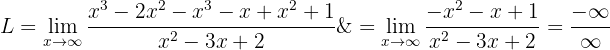 eftersom täljaren är ett polynom av högre grad men huvudkoefficienterna inte har samma tecken. Gränsvärdet är därför: