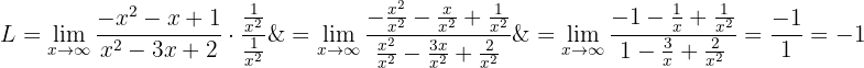 eftersom täljaren är ett polynom av högre grad och huvudkoefficienterna har olika tecken. Gränsvärdet är alltså