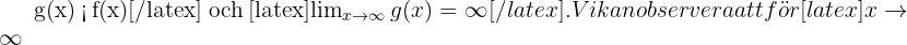 Precis som tidigare betraktar vi funktionen mot oändligheten och får: