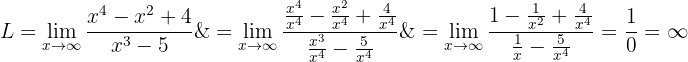 Men om vi löser gränsvärdena för bråken genom att jämföra graden av oändlighet ser vi att: