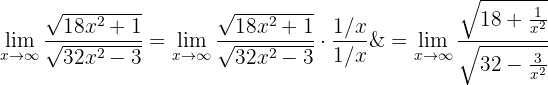 eftersom polynomen i täljaren och nämnaren har samma grad. Gränsvärdet är alltså kvoten av huvudkoefficienterna. På samma sätt är