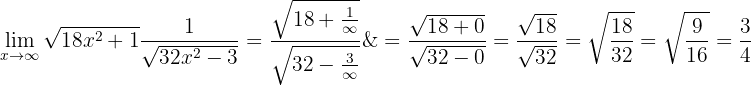 eftersom täljaren är ett polynom av högre grad och huvudkoefficienterna har samma tecken. Gränsvärdet är alltså