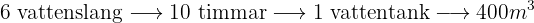 med hjälp av sex vattenslang. Hur många timmar skulle man behöva för att fylla