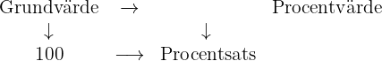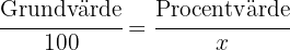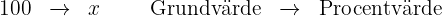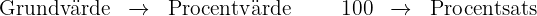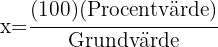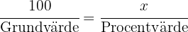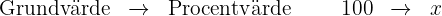 För att underlätta arbetet identifierar vi först det element som ska beräknas. Detta kan vara ett värde eller en procentsats. Det element som ska beräknas ersätter vi med variabeln x i följande tabell: