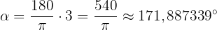 Formeln för att omvandla en vinkel från radianmått till gradmått är följande: