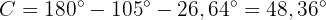 Därefter kan vi använda sinuslagen. Först behöver vi vinkeln