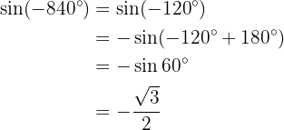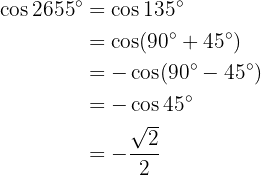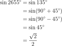 För att beräkna sinus använder vi egenskaperna hos förskjutning av sinus- och cosinusfunktionerna.