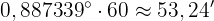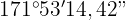 För att få vinkeln i grader, minuter och sekunder gör vi följande: