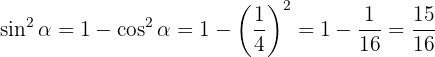 0 < \alpha < \pi / 2[/latex]. Beräkna de övriga trigonometriska funktionerna för vinkeln [latex]\alpha[/latex].