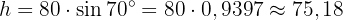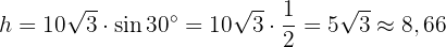 Nu kan vi beräkna höjden. Vi ser att triangeln